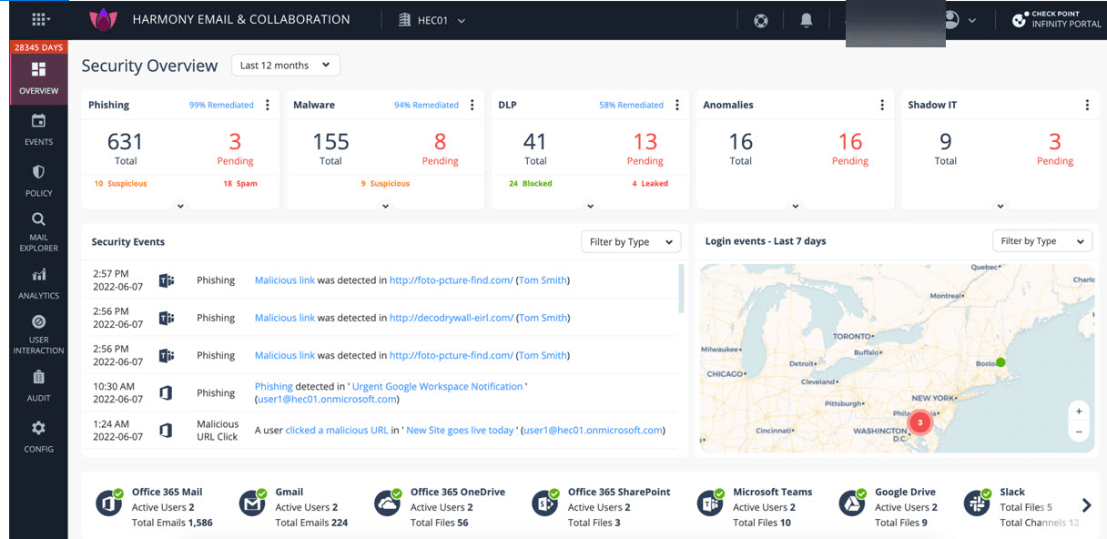 Harmony Email Security yalnızca e-postaları değil, aynı zamanda Microsoft Teams, Slack, OneDrive ve SharePoint gibi iş birliği uygulamalarını da kapsayan bütünsel bir koruma sağlar.